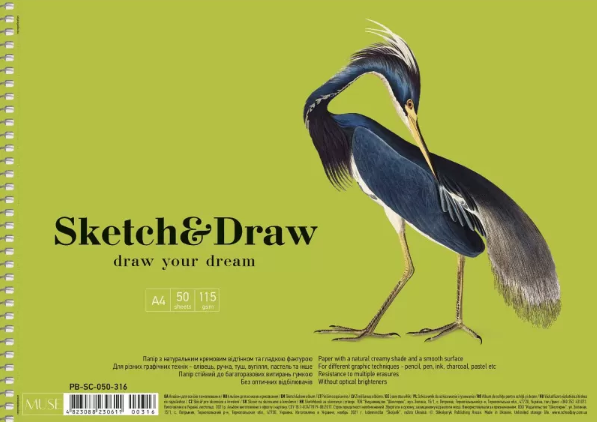 Альбом для ескізів на пруж. 50/115 А4 "Muse" картон №PB-SC-050-316/Школярик/(1)(36)