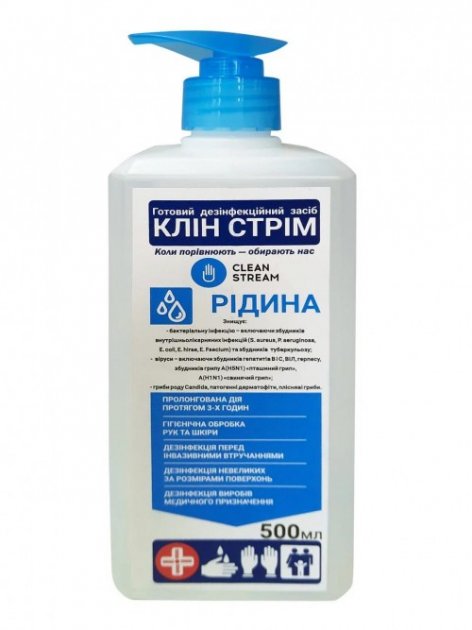 Антисептик для рук та шкіряних покривів "Клін Стрім" 500мл з дозатором (15)