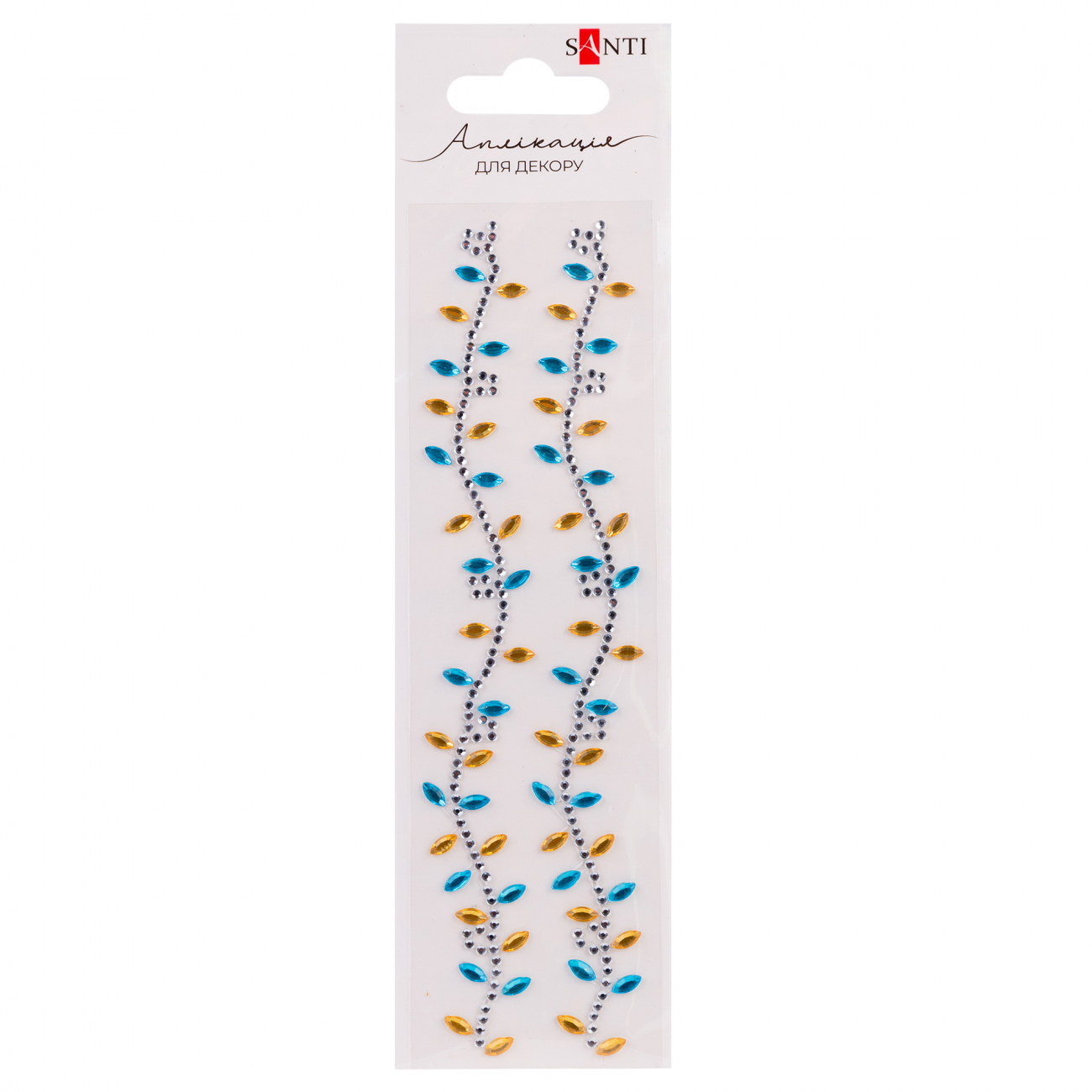 Аплікація зі стразів самокл. "Santi" Листя синьо-жовте 4х16см №743034(12)