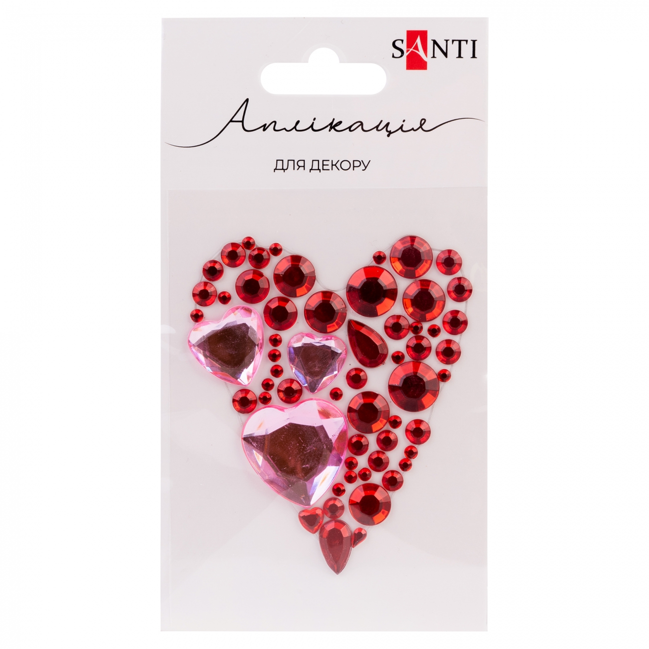 Аплікація зі стразів самокл. "Santi" Серце червоне 6х10см №743027(12)