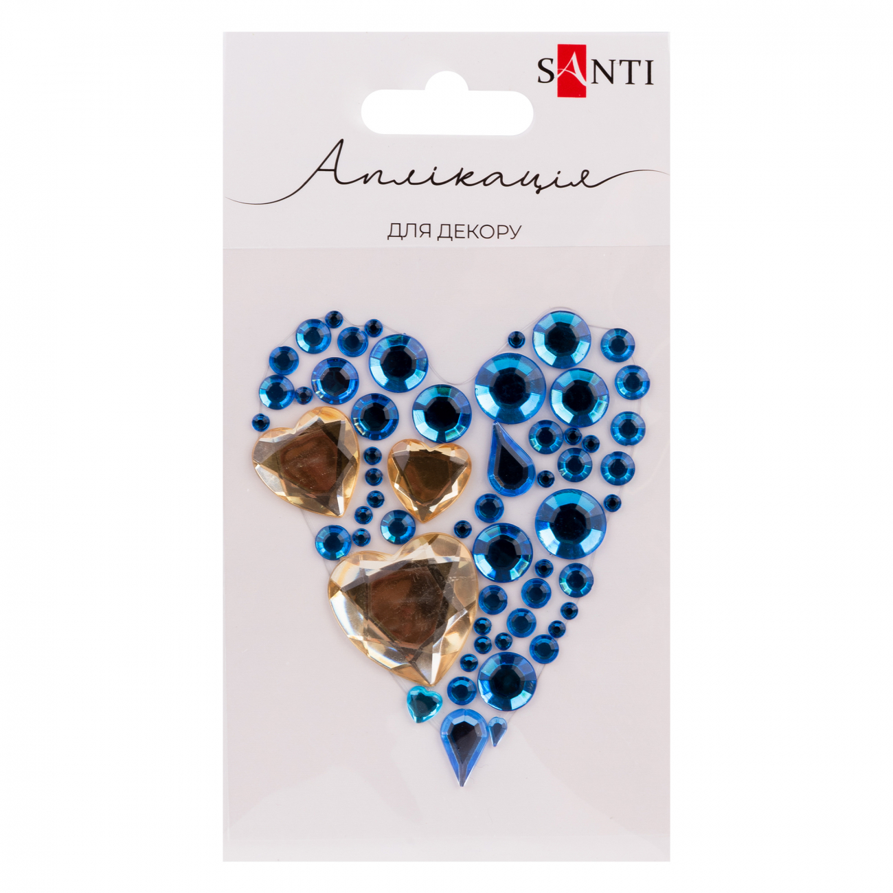 Аплікація зі стразів самокл. "Santi" Серце синьо-жовте 7х8см №743028(12)