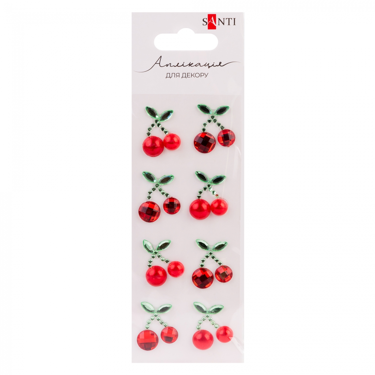 Аплікація зі стразів самокл. "Santi" Вишеньки 7х14см №743035(12)