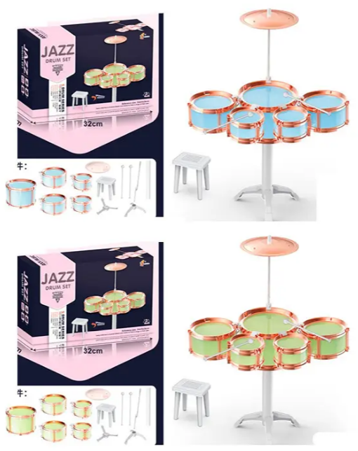 Барабанна установка,барабан 5шт,тарілка,стільчик 20х15х20см,в кор-ці № XBL996-6-7 (24)