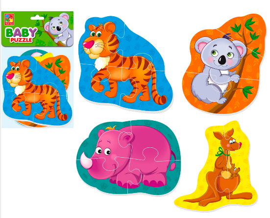 Гра розвиваюча Vladi Toys м'які бейбі пазли "Тигреня та друзі". Особливості: великі елементи, м'які пазли. Комплектація: 4 пазлові картинки. Мова: українська. Вік: 4-5 років.