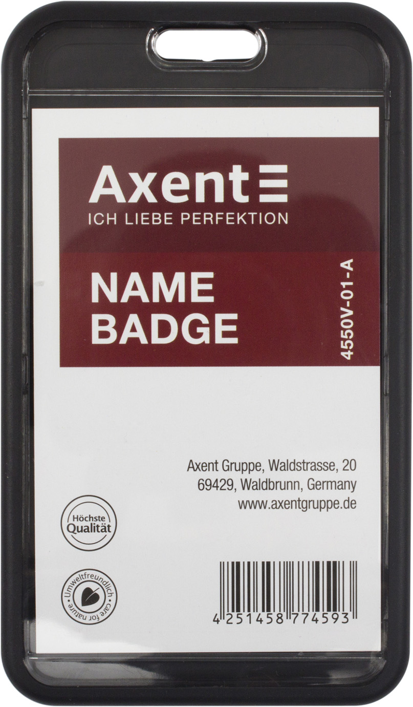 Бейдж-чохол "Axent" SoftTouch №4550V-01-A вертик. 54x85мм,матовий чорний(5)(50)