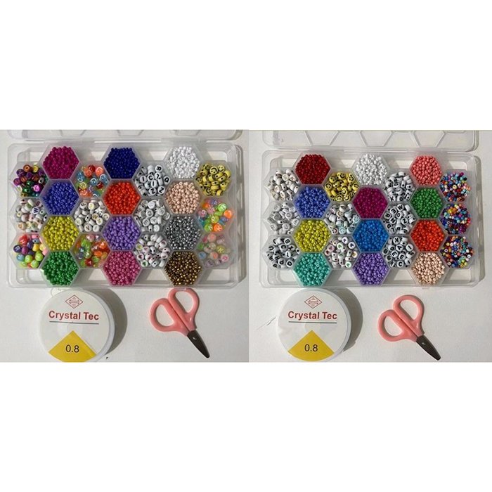 Бісер,намистини (англ.літери, смайли),ножиці,2 види,у пеналі,20х13х2см №242-43(72)