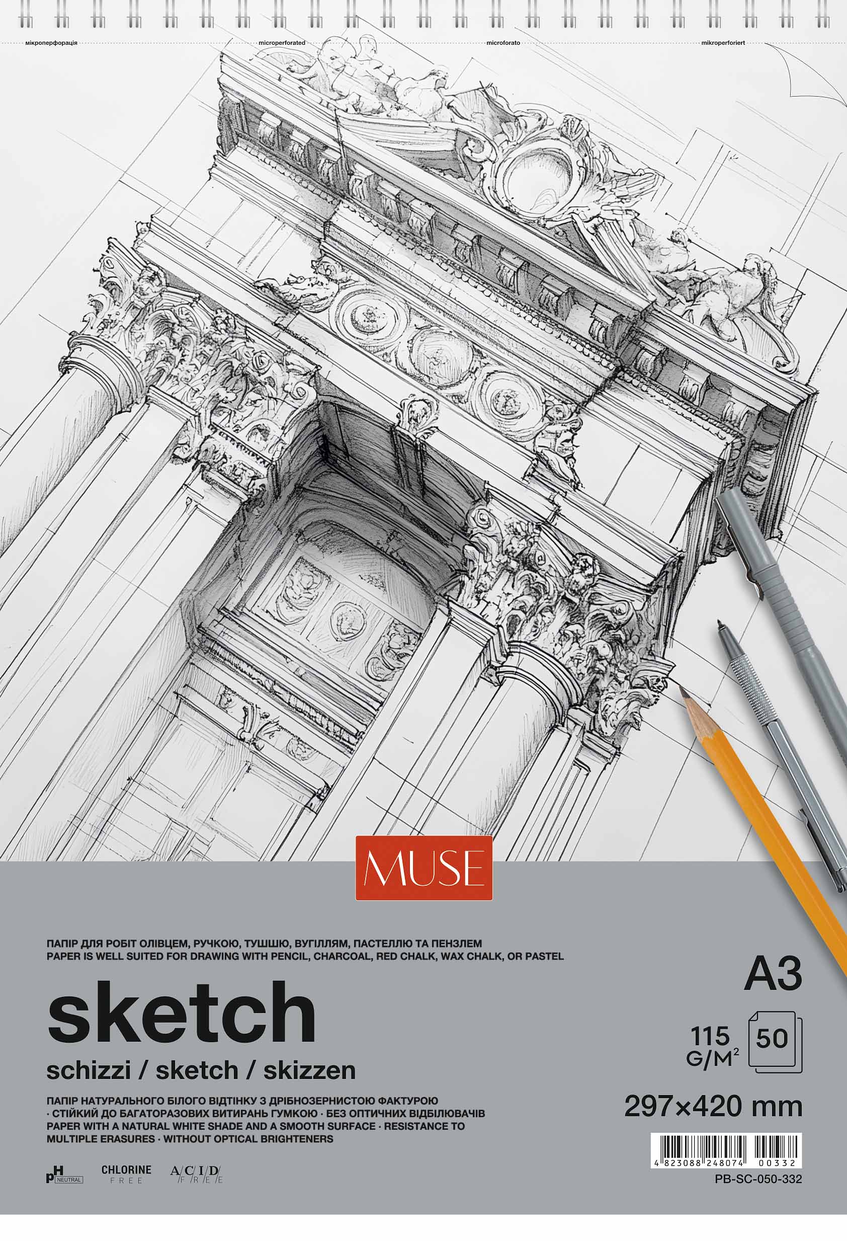 Блок для ескізів та малювання пруж. 50/115 А3 "Muse" №PB-SC-050-332(4)