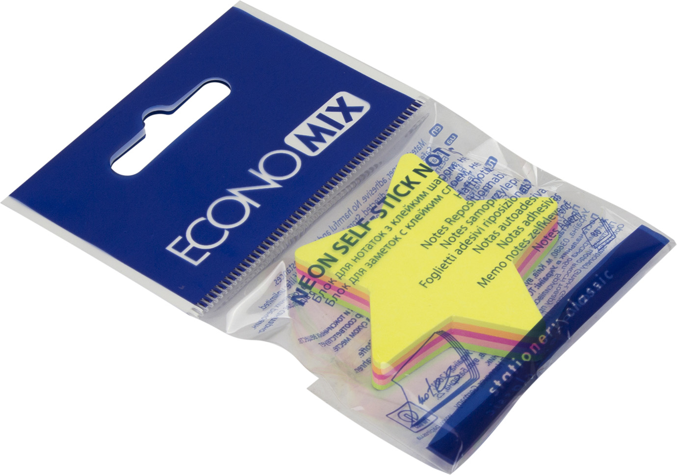 Блок/зам. липк. краєм 45х50мм 80арк. неон. мікс "Economix" №Е20955 "Зірка"(12)