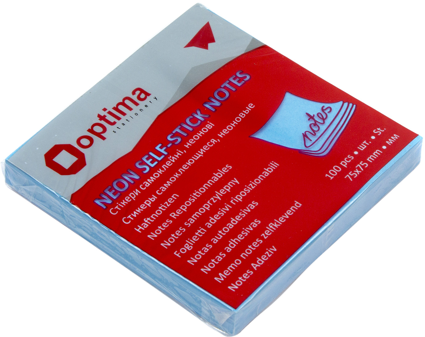 Блок/зам. липк. краєм 75х75мм 100арк. неон. блакитний "Optima" №O25513-11