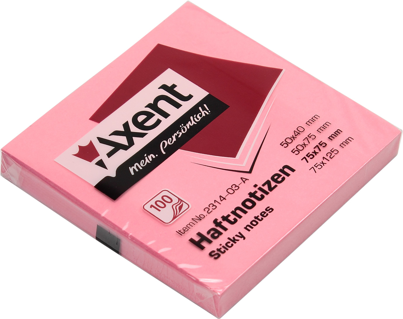 Блок/зам. липк. краєм 75х75мм 100арк. рожевий "Axent" №2314-03(12)(120)