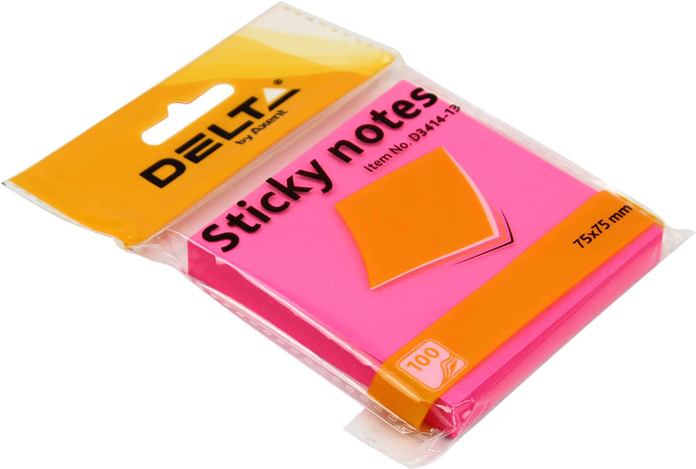 Блок/зам. липк. краєм 75х75мм 100арк. яскраво-рожев. "Axent/Delta" №3414-13(1)(24)(288)