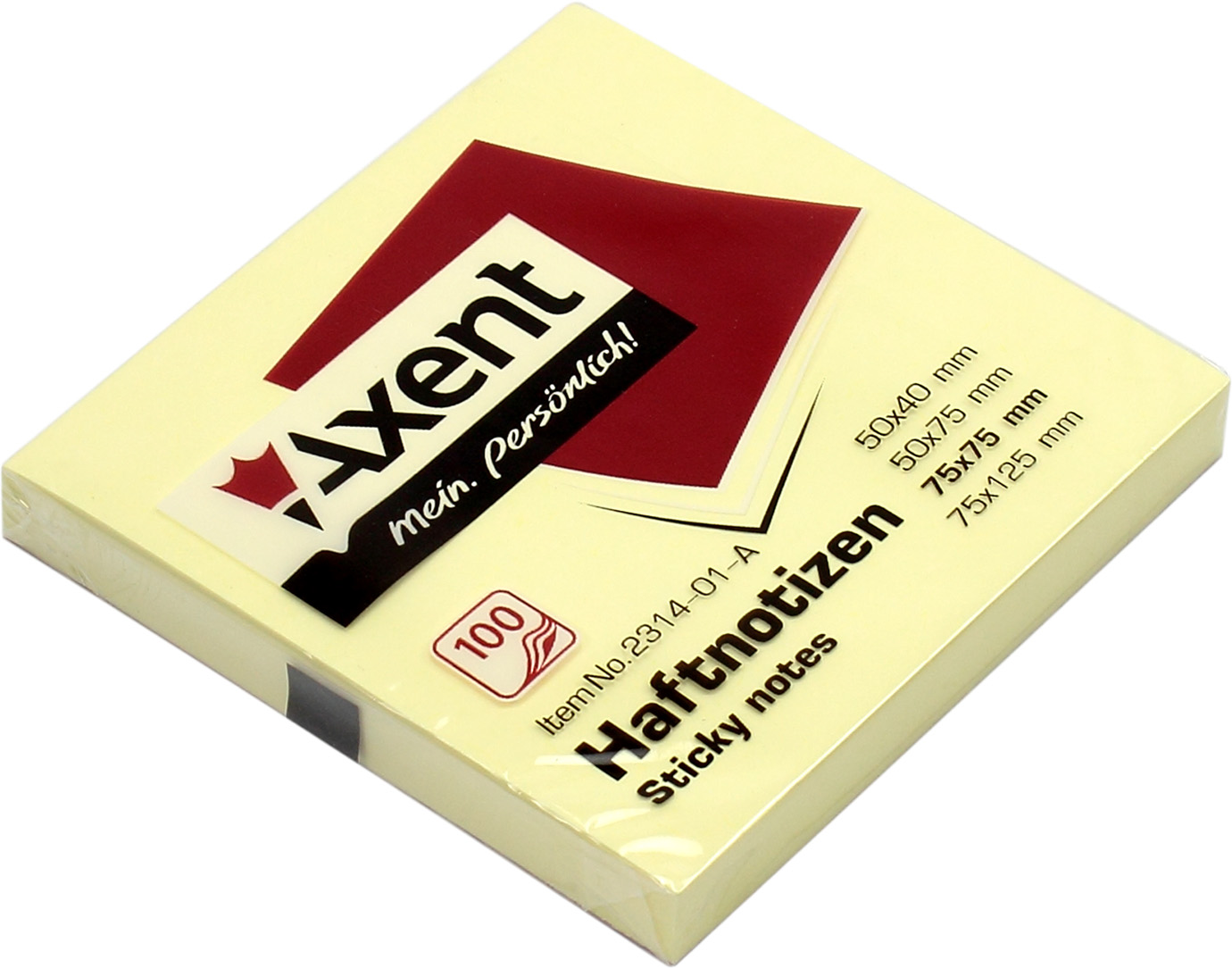 Блок/зам. липк. краєм 75х75мм 100арк. жовтий "Axent" №2314-01(12)(120)