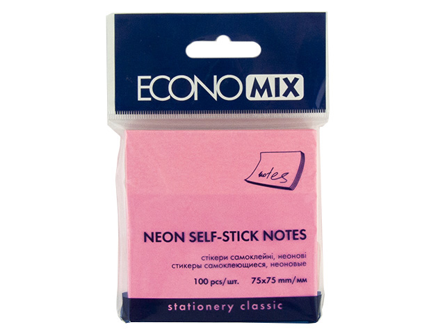 Блок/зам. липк. краєм 76х76мм 100арк. неон. малиновий "Economix" №Е20944-47(12)(144)