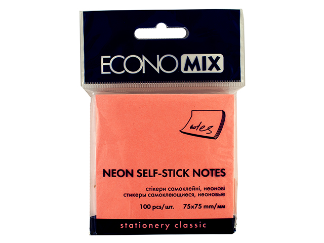 Блок/зам. липк. краєм 76х76мм 100арк. неон. рожев. "Economix" №Е20944-09(12)(144)