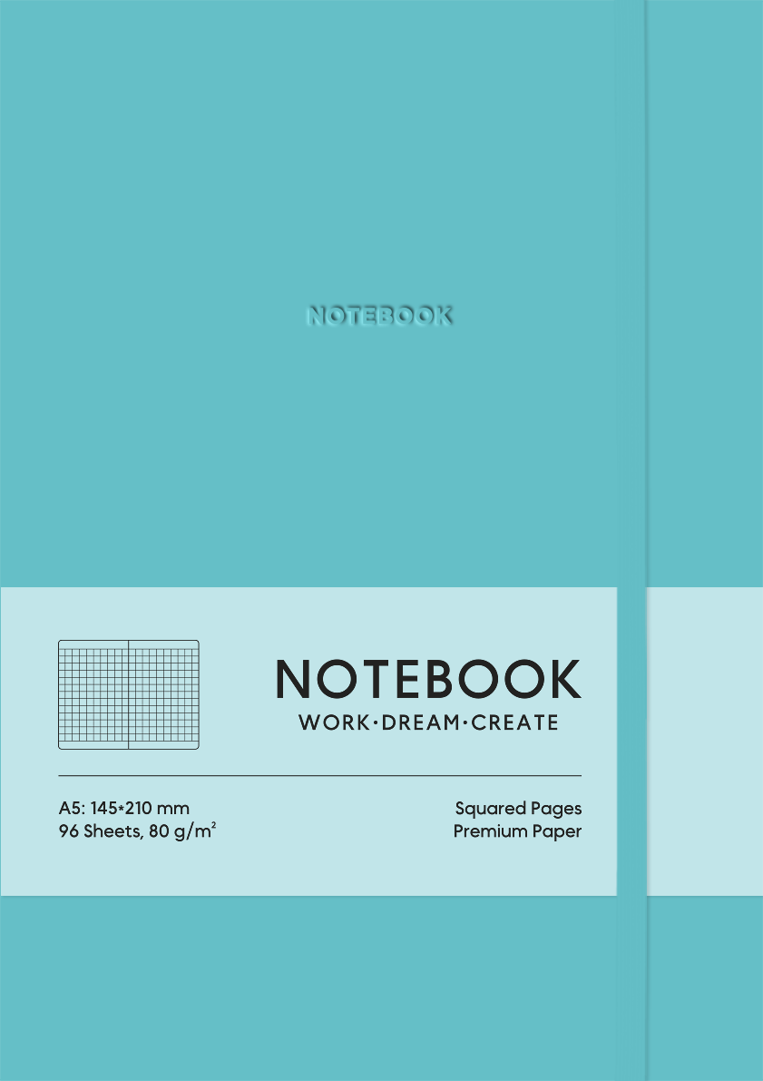 Блокнот А5 96арк. кліт. еко шкіра обкл.,бірюзовий №A5-7119K/Школярик/(12)