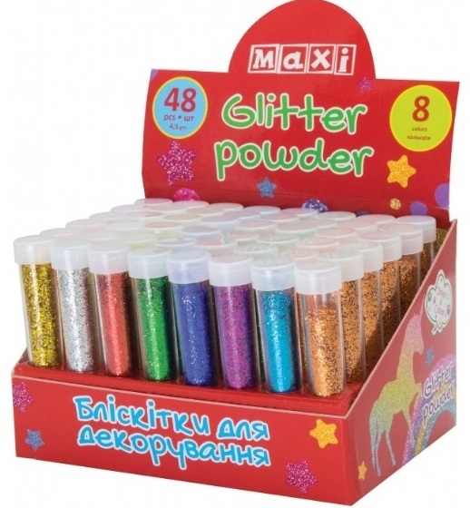 Блискітки "Maxi" Metallic 4,5г, 8 кольорів асорті №MX61601-01(48)