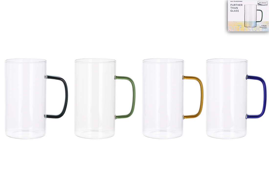 Чашка скло 500мл з кольоровою ручкою №992-009/Bonadi/(4)(72)