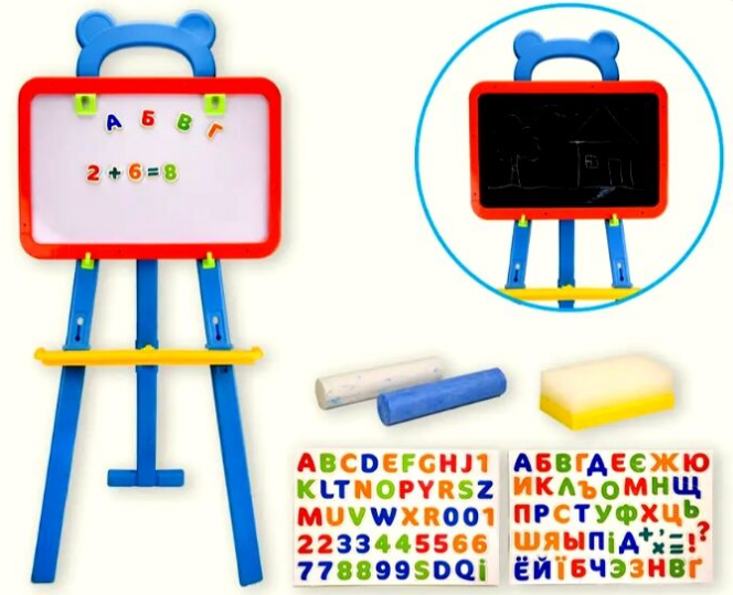 Дошка магнітна 2-х сторон,укр.-укр.-англ.літери,з крейдою,в кор-ці 52х7х32,5см №PL-0703 KI