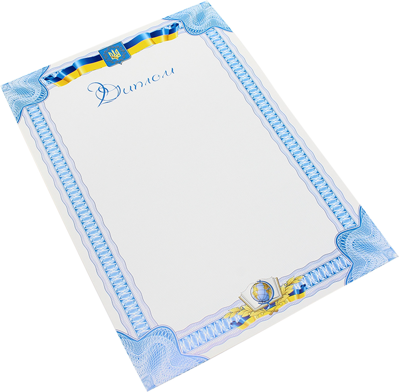 Диплом А4 білий фон,тризуб,стрічка,глобус №4/Аркуш/(100)