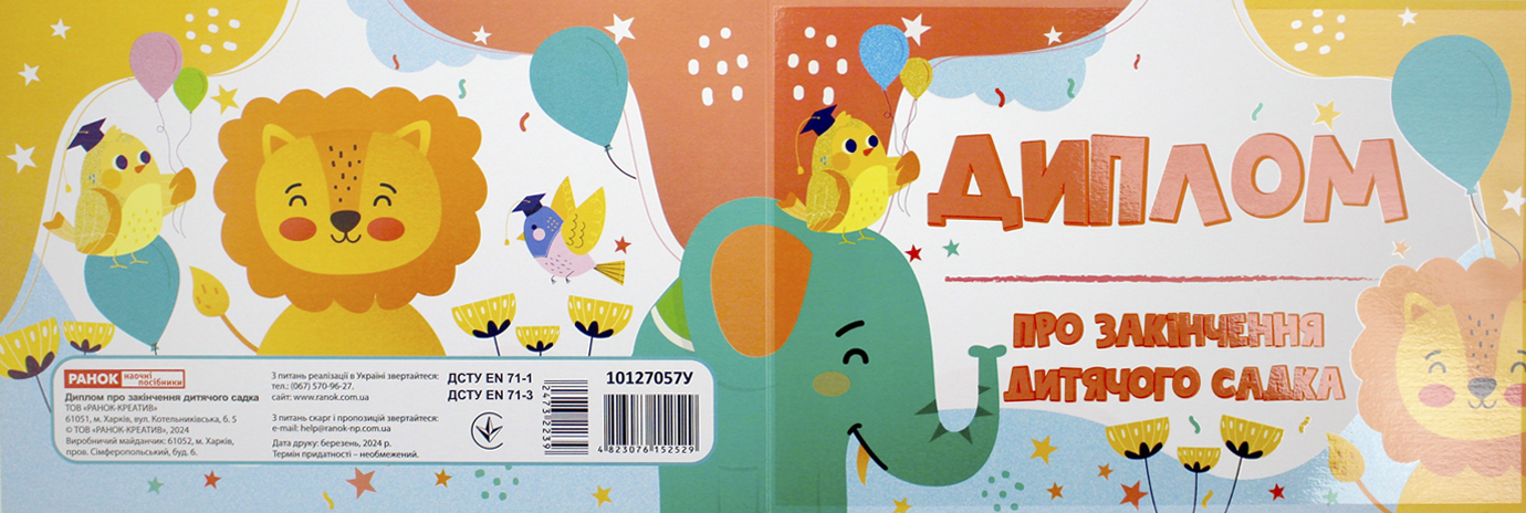 Диплом А4 про закінчення дитячого садка із слоненям №3892-2(50)