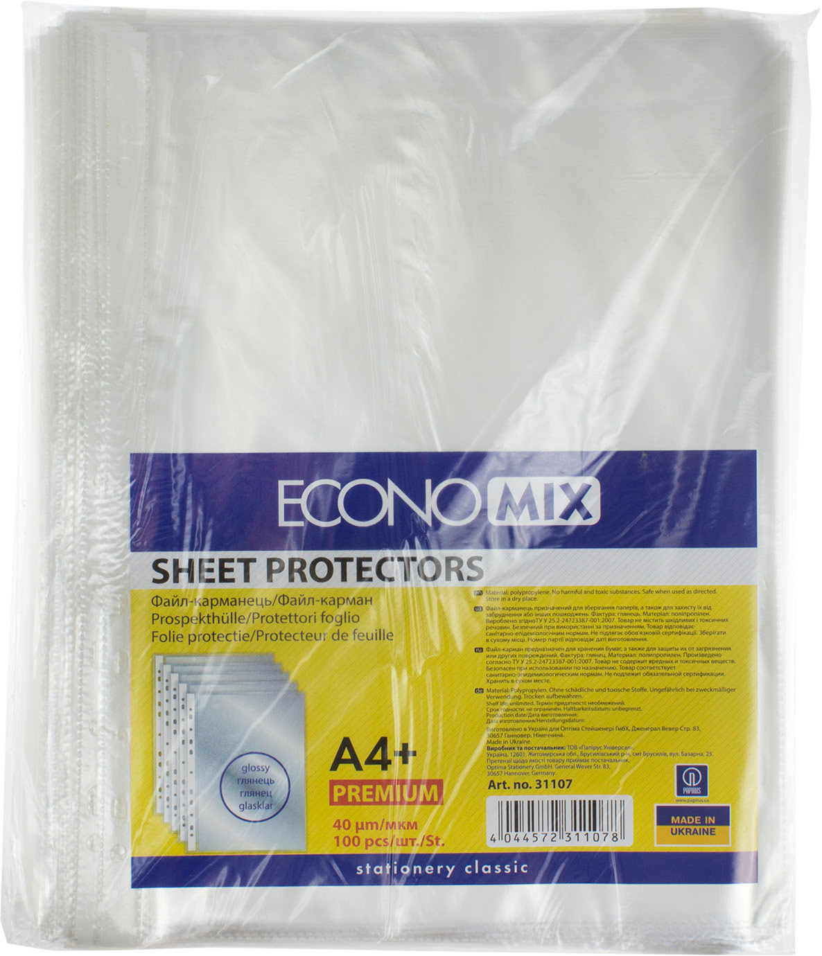 Файл А4+ "Economix" №E31107 40мкм глянц.(100шт/пач.)(20пач./ящ.)