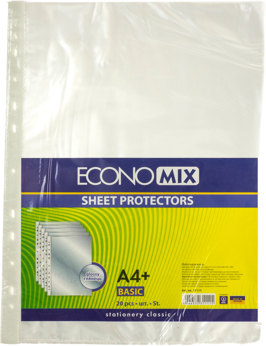 Файл А4+ "Economix" №E31111 30мкм глянц.(20шт/пач.)(90)