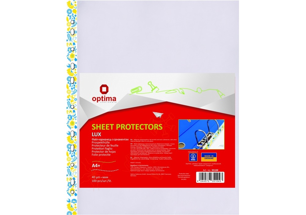 Файл А4+ "Optima" №O35104 40мкм гладкий,з жовто-блакитним орнаментом(100шт/пач.)(20)