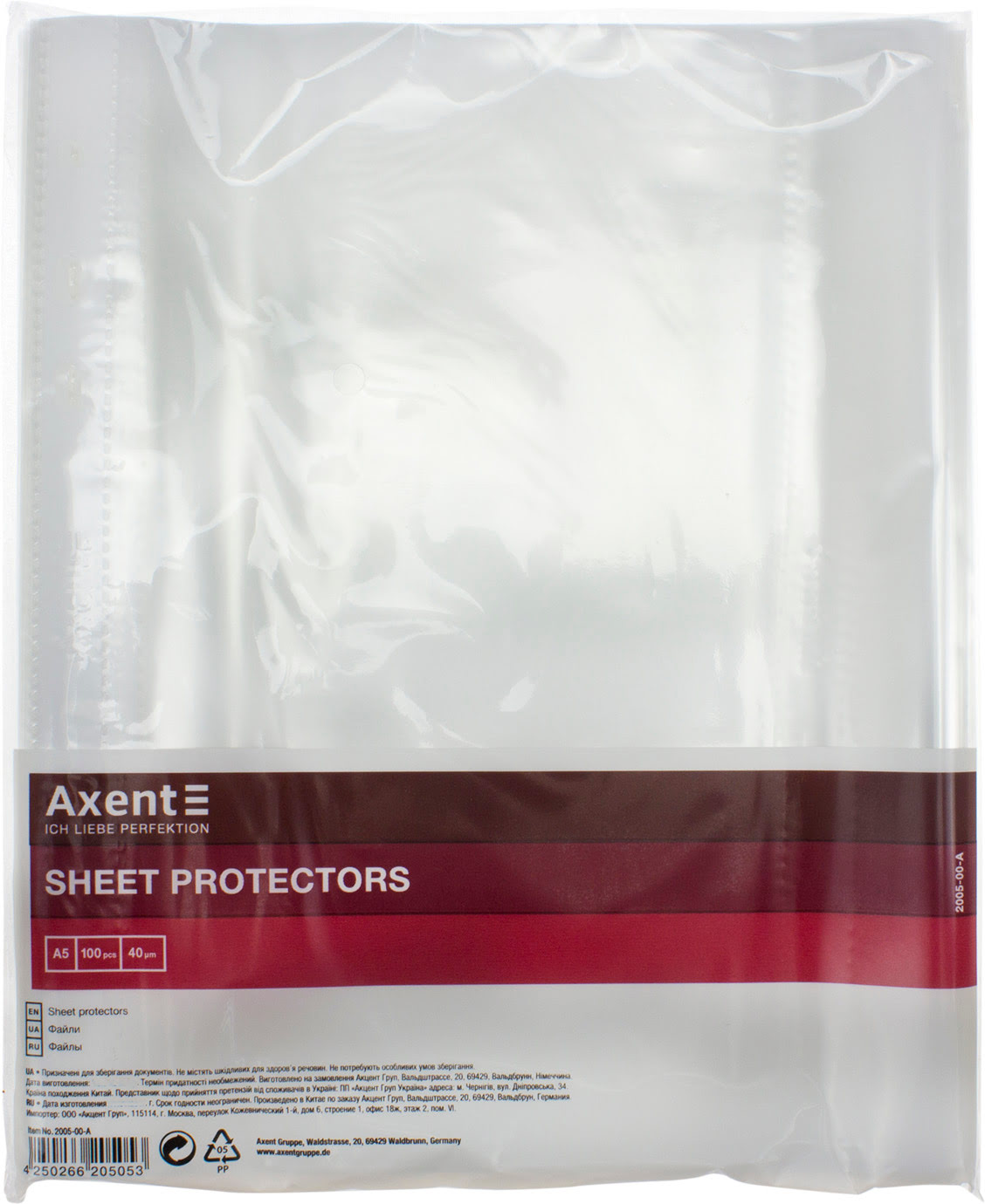 Файл А5 "Axent" №2005-00 40мкм глянц.(100шт/пач.)(40пач./ящ.)