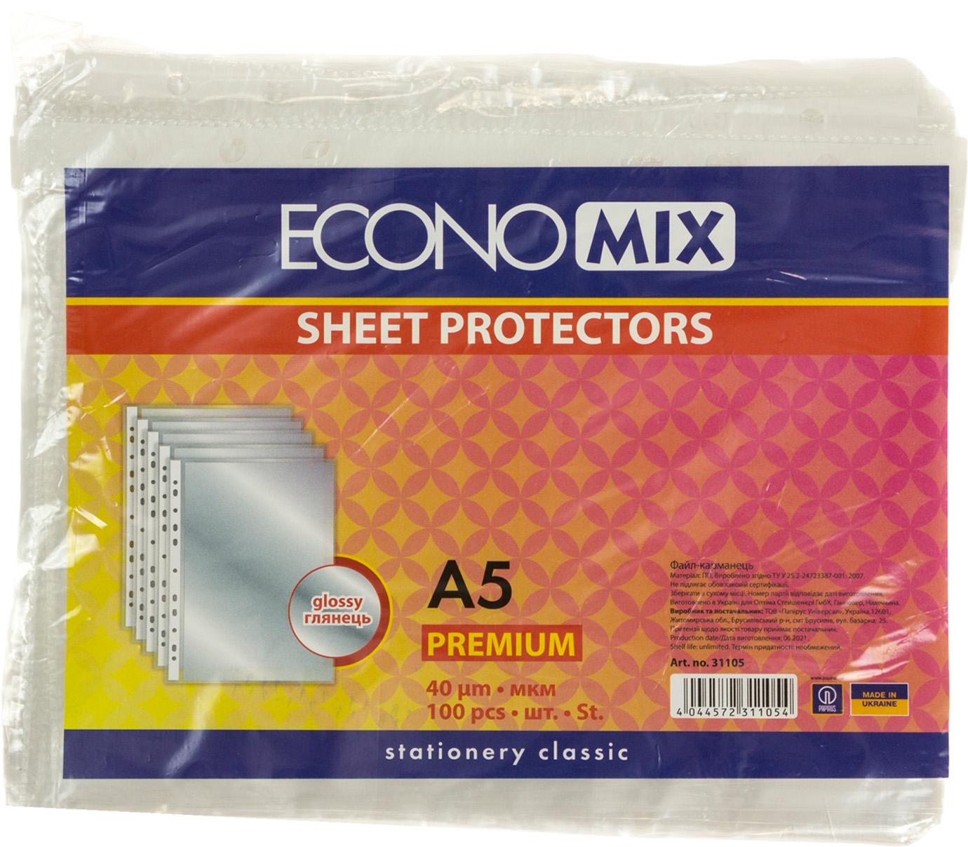 Файл А5 "Economix" №E31105 40мкм глянц.(100шт/пач.)(30)