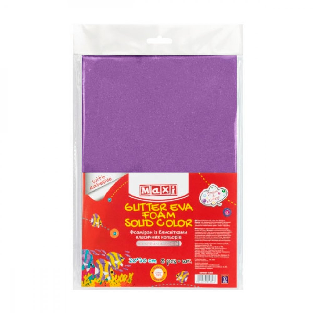 Фоаміран А4 "Maxi" з блискітками, неон фіолетовий, 2мм №MX62656(10)
