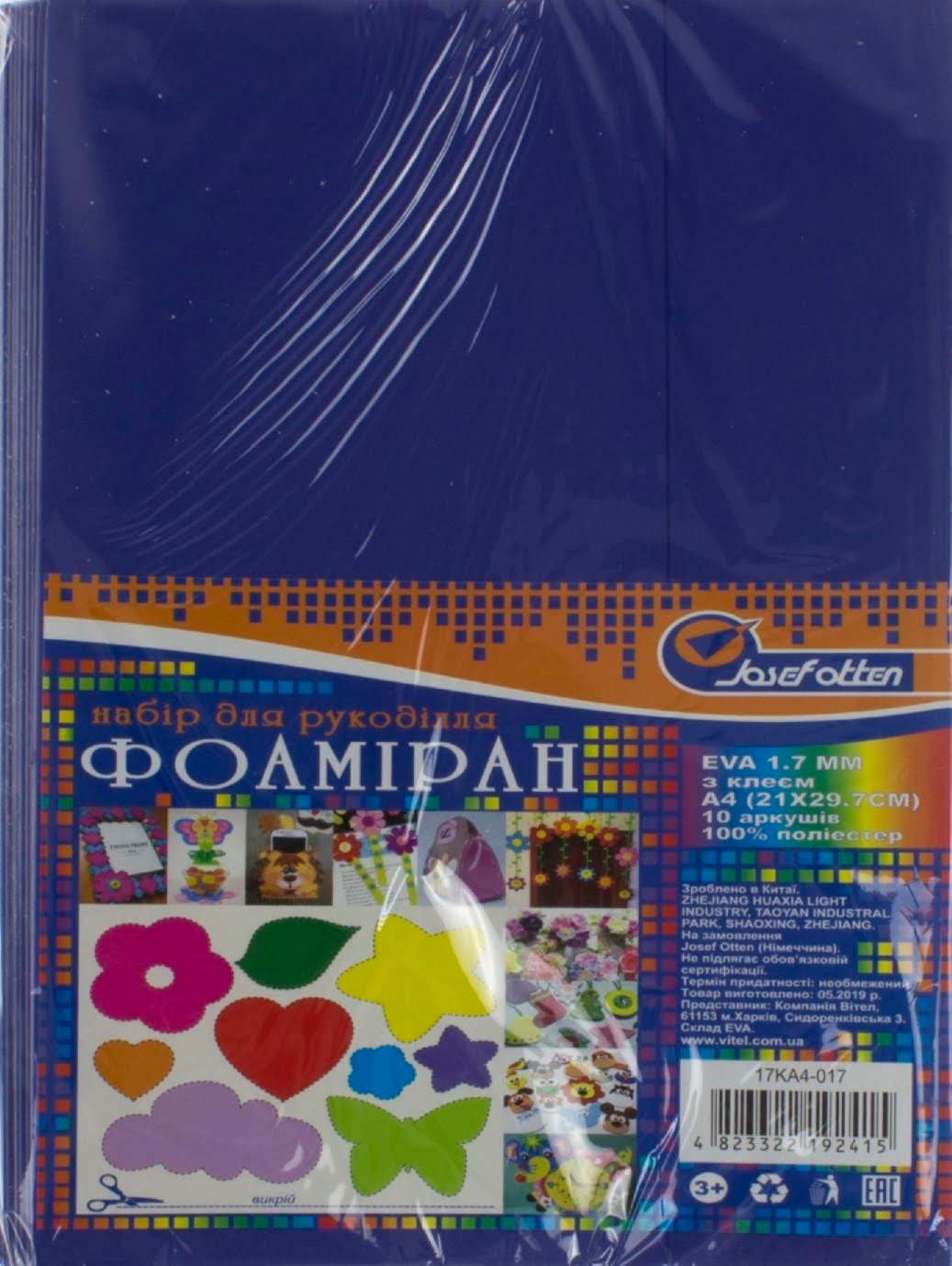 Фоаміран А4 темно-синій,товщина 1,7мм EVA,клейкий №17KA4-017(10)