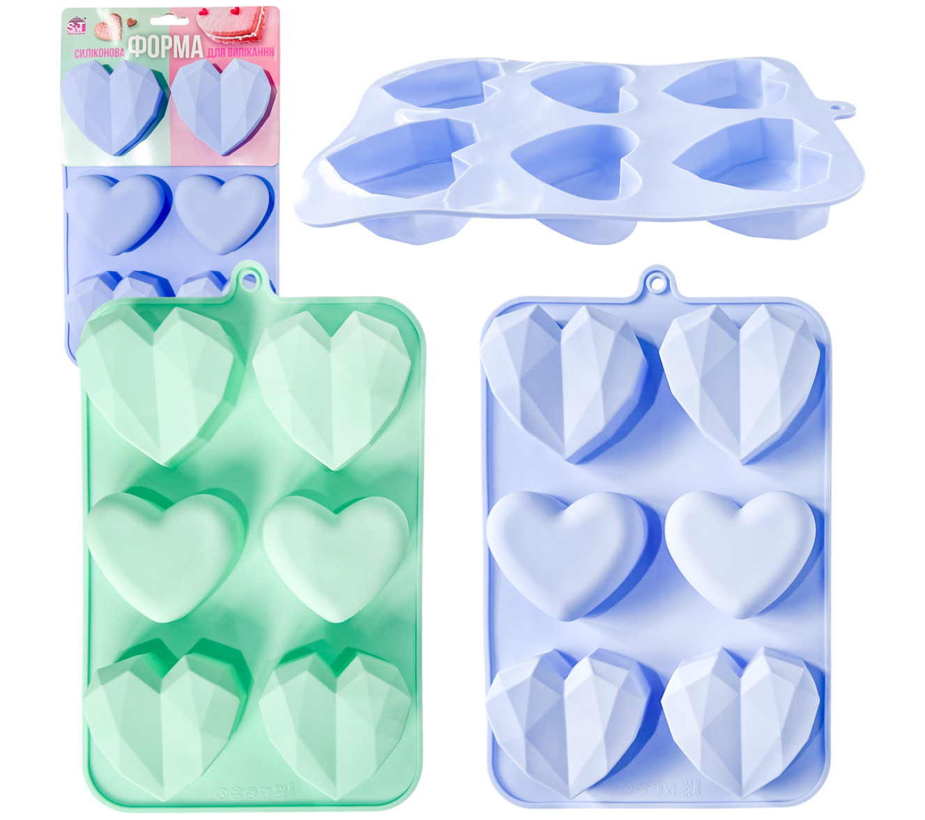 Форма для кекса силікон "Серце" 6шт 27,5х16,5см №3200-71/S&T/