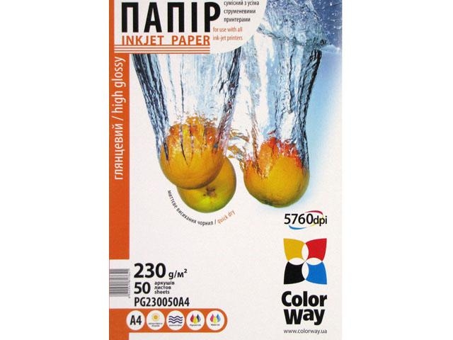Фотопапір "CW" А4 230г/м глянц. №PG230-50/PG230050A4/7641 карт.уп.(50)(1000)