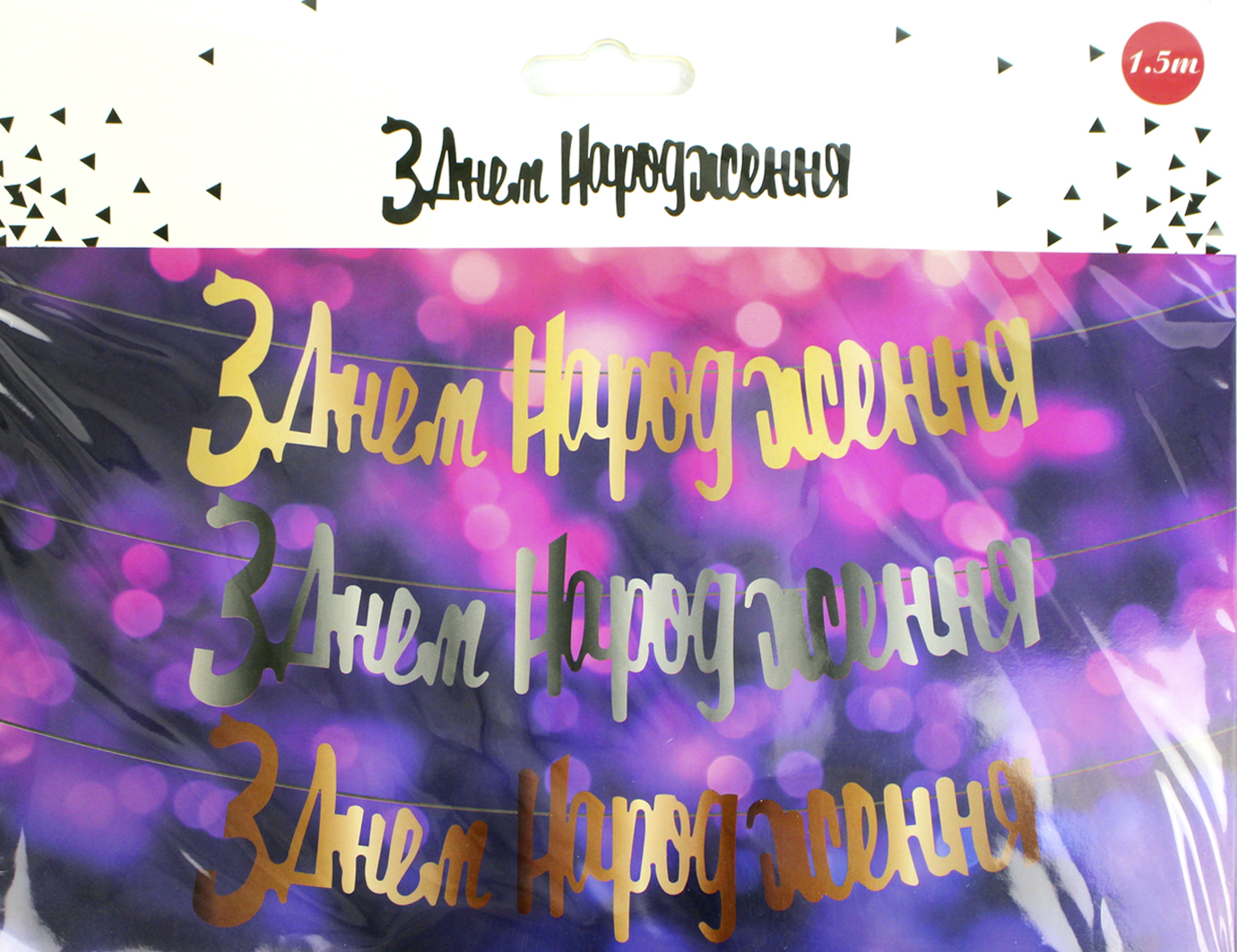 Гірлянда. від З днем народження. колір рожевий. Купити з доставкою по Україні в інтернет-магазині Канцелярський Сад.