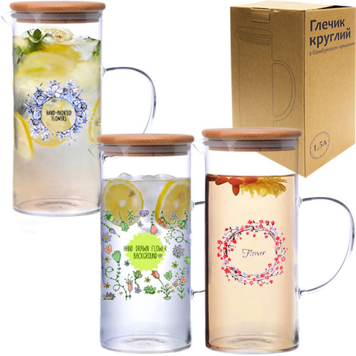 Глечик скло 1,5л круглий з бамбуковою кришкою №9030-2/S&T/(12)