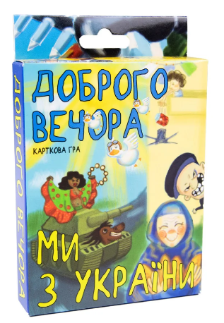 Це карткова гра, в якій «київські гопники» та «безстрашні цигани» перебивають «рускій воєнний корабль», «заспокійливий Арестович» дійсно заспокоює, а кожен гравець може поставити крапку в раунді за допомогою «паляниці». Грати дуже просто та весело, особливо, якщо ви справжні українці. Всім роздають по 12 карт відкритими, які потрібно швидко запам'ятати та перевернути. А далі гравці викладають по одній картці, намагаючись викласти таку, яка буде вище номіналом за картки суперників. Якщо вийшло – гравець забирає всі карти собі. І для перемоги гравцеві потрібно зібрати якомога більше. Вік: 15+ Кількість гравців: 2-4 Комплектація: 52 картки, інструкція