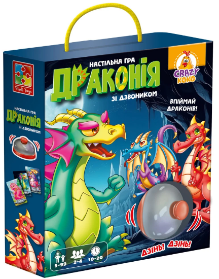Дитина із задоволенням збирає драконів у веселій грі зі дзвоником і активно розвиває свою увагу та реакцію! Особливості: набір гральних карточок разом із дзвоником. Комплектація: 100 карток, 1 дзвоник, правила гри. Мова: українська. Вік: 5-99 років.