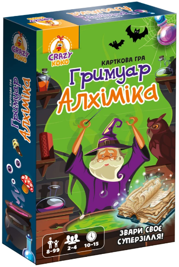 Настільна карткова гра для всієї сім’ї. Уявіть себе чаклунами та змагайтесь у зіллєварінні! Комплектація: 100 ігрових карт Вік: 8-99 років Кількість гравців: 2-4 Час гри: 10-15 хв.
