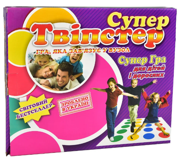 Весела і барвиста гра «Супер Твіпстер» Strateg (379) для великої компанії – кращий спосіб здружитися, розважитися і випробувати гнучкість своєї розтяжки! Віддатися грі можна на будь-якій поверхні, вдома або на газоні. Переможе найбільш спритний і пластичний гравець! Правила «Супер Твіпстер» дозволяють отримати перемогу за рахунок своєї винахідливості і правильно прорахованих ходів. Головна особливість набору – наявність рулетки. Вона вкаже, хто першим робить хід і куди потрібно ставати. Іноді доводиться практично зав'язатись у вузол! Запропонуй своїм товаришам приєднатися і грайте максимальною кількістю учасників. ♦ Рекомендований вік гравців: 6+; ♦ Размір пакування: 33х28х5 см; ♦ Комплектація набору: ігрове поле розміром 200х125 з тканини з водонепроникним покриттям, картонна рулетка. Інструкція написана на коробці; ♦ Кількість гравців: 2-4. Для гри необхідний ведучий. Набір українською мовою.
