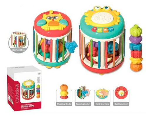Гра "Циліндр" грані-резинки,годинник,фігурки,барабан,піаніно,на бат-ці,в кор-ці №YL521(24)
