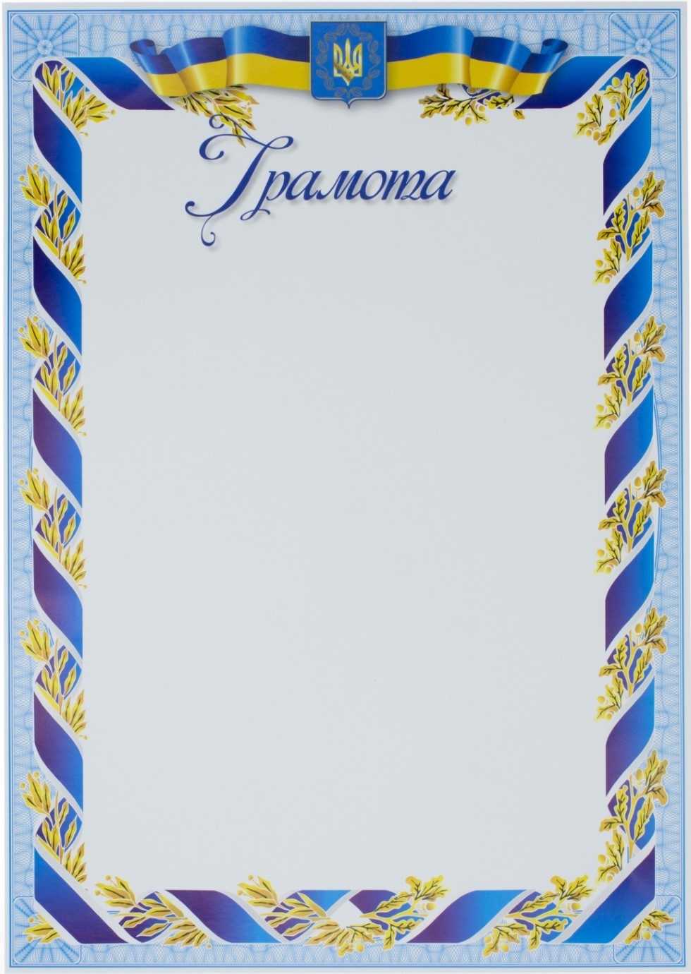 Грамота А4 білий фон,стрічка з лавром №15/Аркуш/(100)