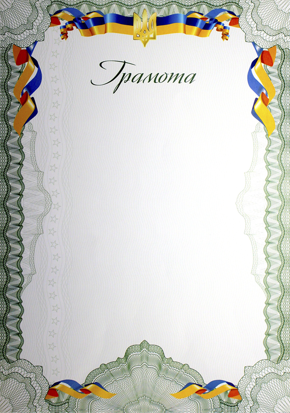 Грамота А4 білий фон,тризуб,лента,рамка №9/Аркуш/(100)