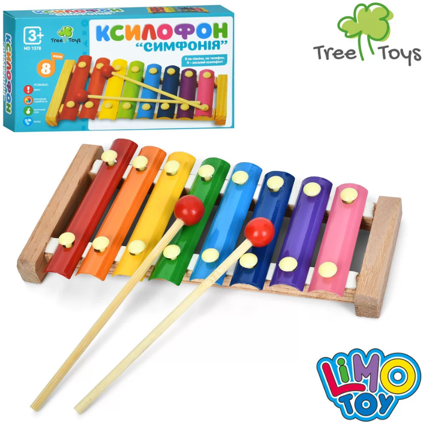 Іграшка дерев'яна Ксилофон 24х13,5х3см,8 тонів,палички 2шт,дерево+метал,в кор-ці №MD 1378