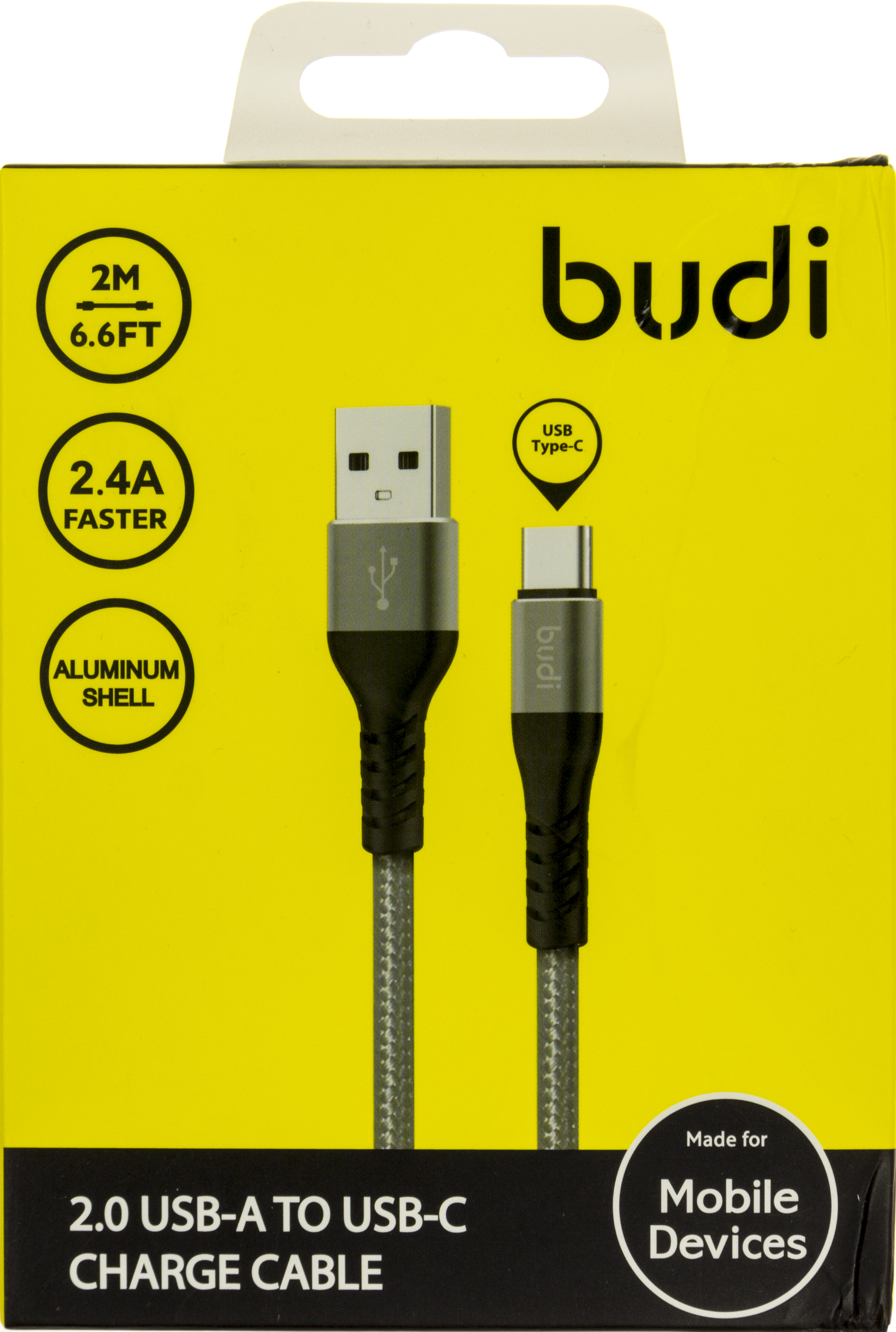 Кабель USB > Type-C Budi 2.4A 2м grey №DC197T20H/Breidon/