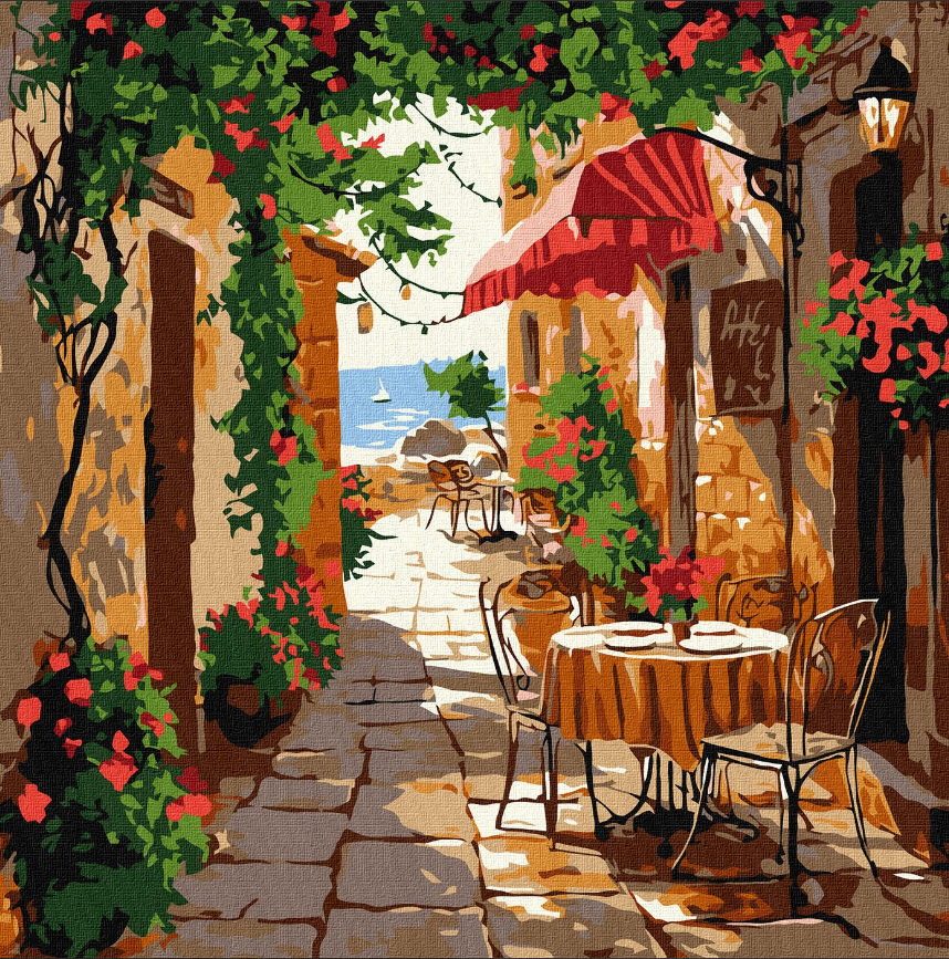Картини по номерах акрил. "Кав'ярня з вінтажними меблями" 30х30см №KHO6381/Ідейка/