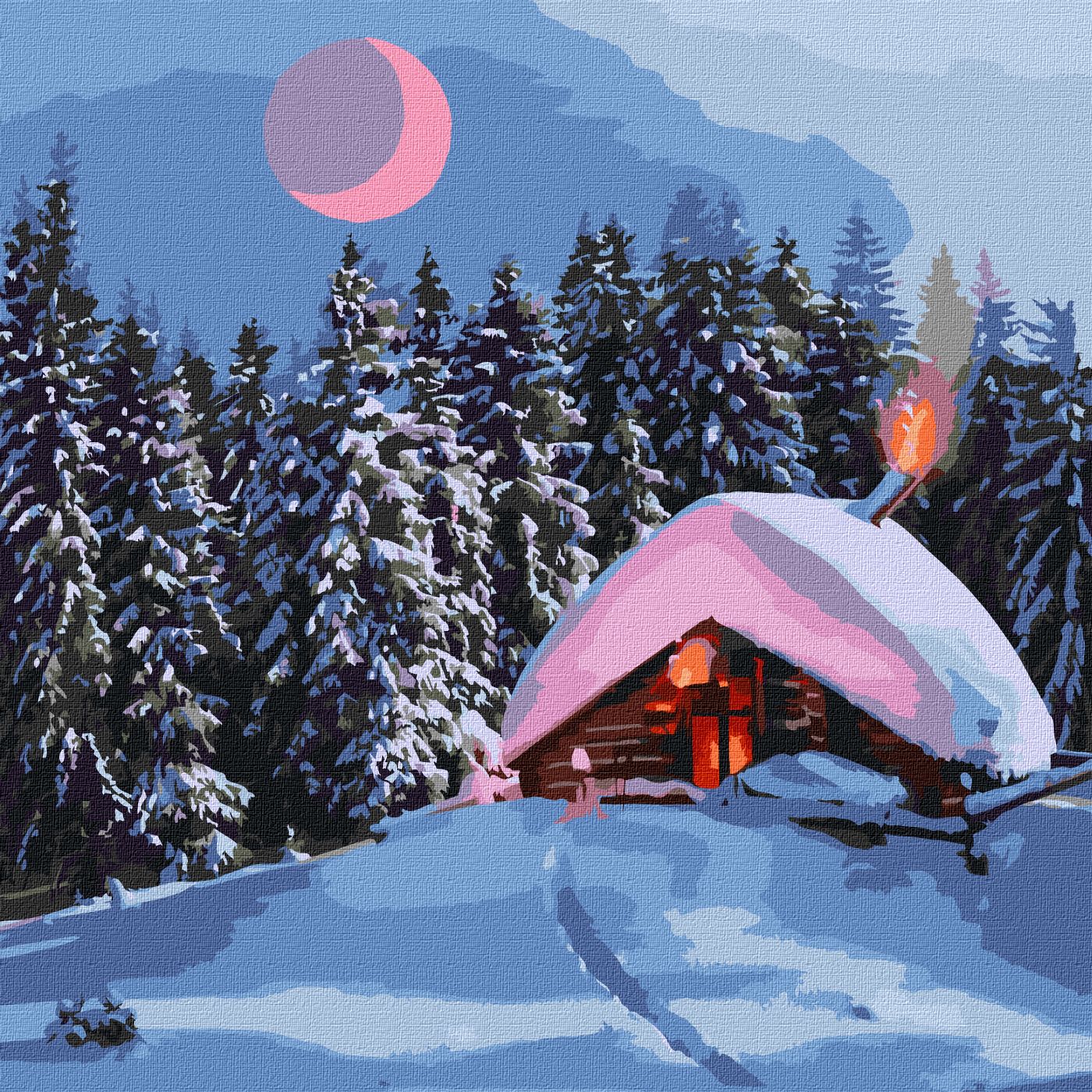 Картини по номерах акрил. "Засніжена хатинка" 40х40см №KHO6307/Ідейка/