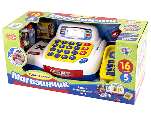 Касовий апарат на бат-ці,калькулятор,звук,світл.,продукти,в кор-ці,43х18х18см №7020-UA(12)