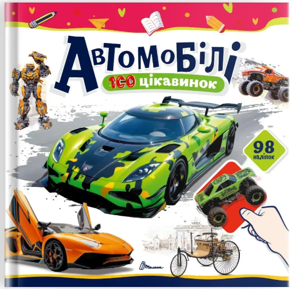 Книжка В5 "100 цікавинок : Автомобілі" наліпки №2652/Талант/(24)