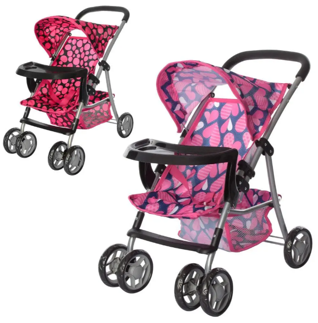 Коляска для ляльок метал. 4 колеса,передні поворотні,козирок,кошик,столик №9304BWT/025(4)