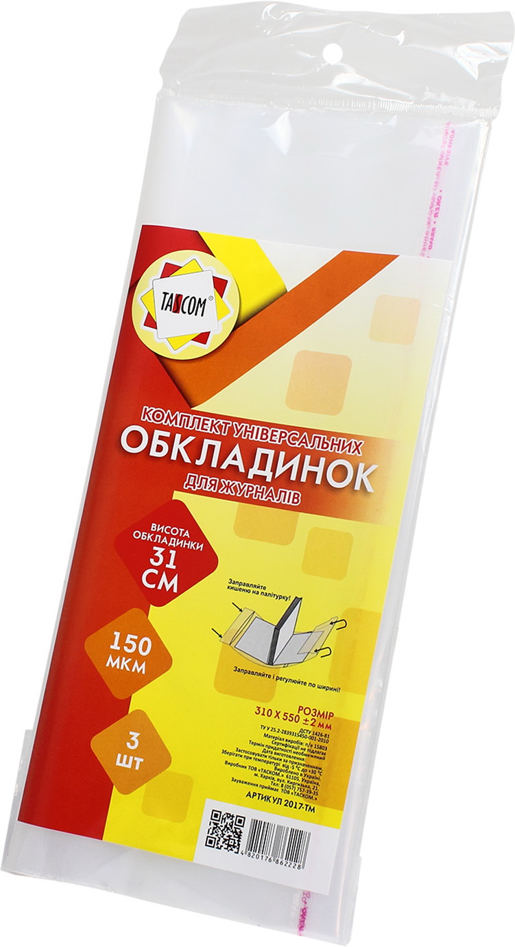 Комплект обклад. рег. для роб. зошитів,тестів та канц. книг Tascom 150мкм 3шт №2017-ТМ